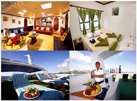 El Archipell I cuenta con 8 hermosas y cómodas cabinas dobles en la cubierta principal, con vista al mar, baño privado, agua caliente, closet, caja fuerte, un comedor confortable y dos bares (interior y exterior), biblioteca, aire acondicionado, TV, DVD, equipo de música, equipo de primeros auxilios, máquina de hielo, purificador de agua, amplia terraza con sillas para tomar el sol y descansar.